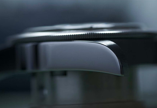 一体成型316L精钢表壳,经冷锻技术加工,侧面线条流畅,表背镌刻品牌标识,经10道抛光工序呈现镜面效果。
